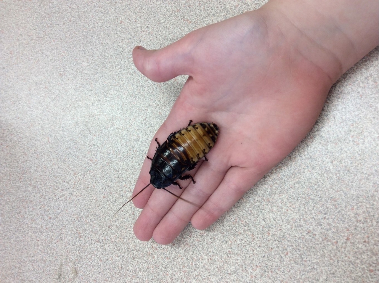 We got to hold Madagascan hissing cockroaches. They were very tickly when they crawled up our arms. If they felt threatened, they made a hissing noise. This is their defence against predators.